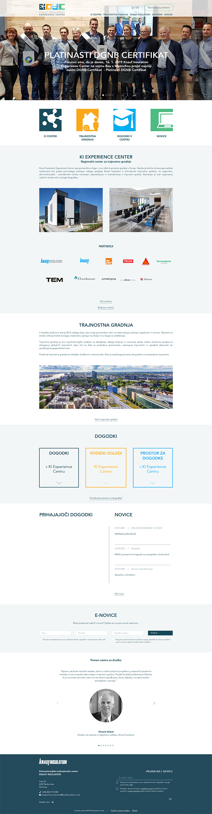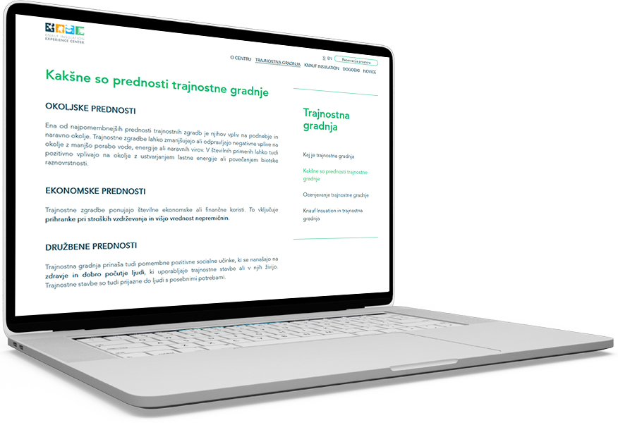 Podjetje Knauf Insulation je v namen izobraževanja in usposabljanja o trajnostni gradnji, zgradilo stavbo, ki je prva nova zelena stavba v Sloveniji. Da bi stavba služila svojemu namenu, v njej organizirajo različne dogodke ter prostore ponujajo v najem tudi zunanjim uporabnikom. Center je opremljen po najsodobnejših standardih, ki vključuje tudi sodobno digitalno opremo.