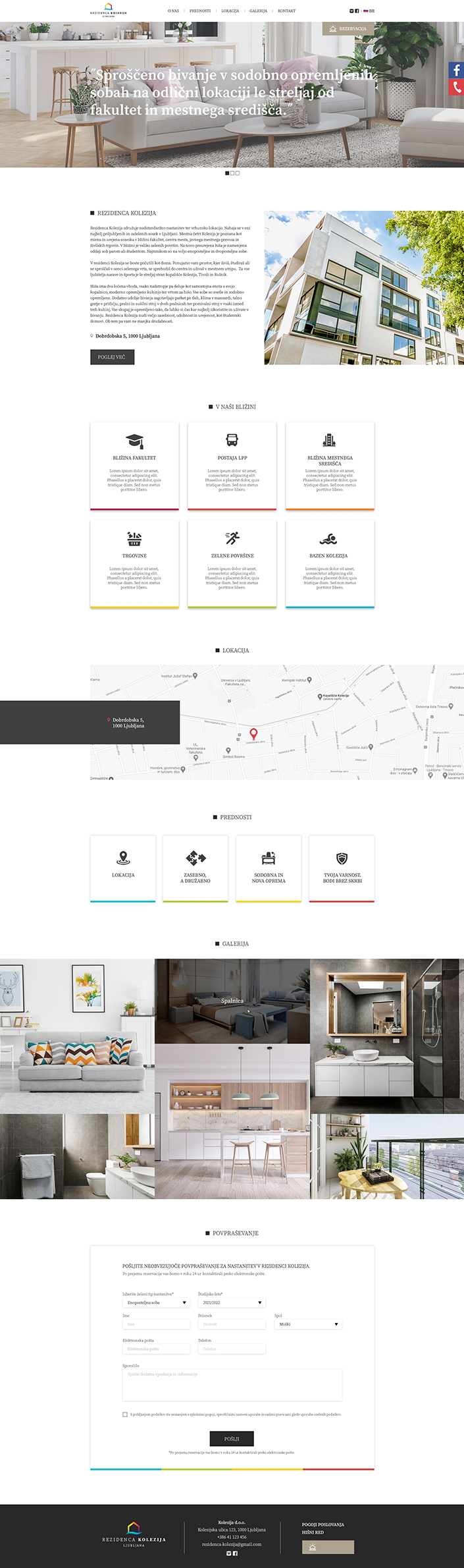 Trije poslovni partnerji, ki so izkusili bivanje in študij v tujini, so zasnovali Rezidenco Kolezija. Mladim so želeli ponuditi najboljše; celotno doživetje idealnih pogojev za študij, delo in sprostitev v priljubljeni ljubljanski četrti.
