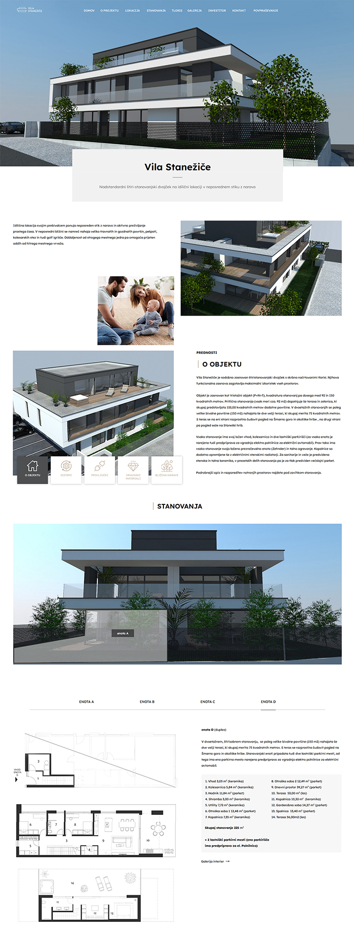 Ob kliku na izbrano enoto na renderju vile, se vam odpre tloris z ustreznim za bivalno enoto oz. stanovanje. |