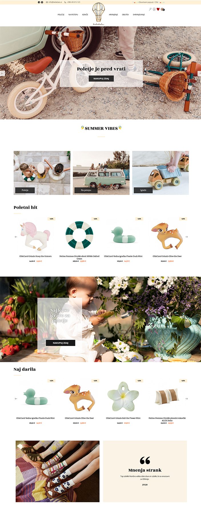 Bebebalu ponuja kakovostne, trajnostne izdelke za malčke, narejene iz okolju prijaznih materialov. V njihovi spletni trgovini najdete aktualno ponudbo za letni čas, poganjalce, skiroje, igrače, pripomočke za hranjenje in še in še.