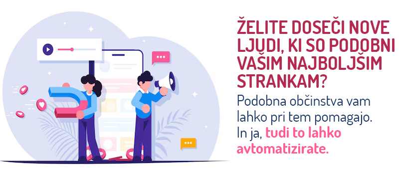Združite podobna občinstva s svojo avtomatizirano ponudbo in testiranjem kreativnosti, in ustvarili boste močan sistem za širjenje svojih oglasov na nova občinstva.