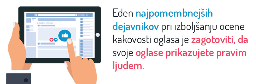 Eden najpomembnejših dejavnikov pri izboljšanju ocene kakovosti oglasa je zagotoviti, da svoje oglase prikazujete pravim ljudem. To je, kot bi poskušali prodati led Eskimom – ne glede na to, kako dober je vaš oglas, če ni relevanten za občinstvo, ne bo dobro deloval.