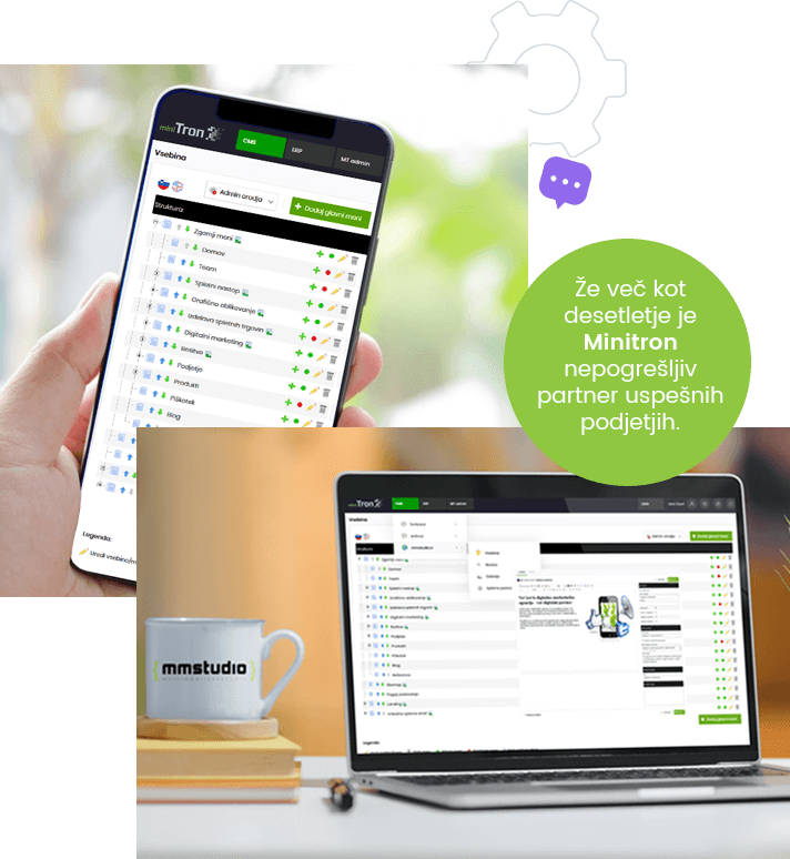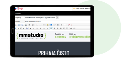 Delo s programom Minitron je enostavno in se da hitro nauciti . Če včasim kaj pozabim, jih pokličem in z veseljem mi pomagajo. Delamo v njiihovem CMS-u in večinoma vse lahko uiredimo sami (99% ) in to nam je bila želja, da nismo odvisno od nikogar , ker nase produkte ažuriramo dnevno. Odlocili smo se da bomo dodali se eno WEB stran, katera bo oživela kmalu in seveda v sodelovanju z MMSTUDIO.