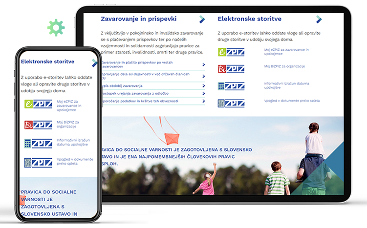 Spletna stran Zavoda za pokojninsko in invalidsko zavarovanje Slovenije je spletno mesto, kjer so zbrane informacije in obrazci, katere zadevajo praktično vsakega odraslega prebivalca RS. Ravno zaradi tega smo morali poskrbeti za jasno zasnovo in preprosto navigacijo spletne strani, za večjezično spletno stran in pa dodatne funkcionalnosti, ki omogočajo nemoteno uporabo strani tudi slabovidnim in gluhim osebam.