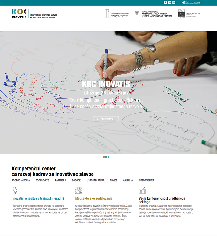 KOC Inovatis je kompetenčni center za razvoj kadrov za pametne stavbe. Na enem mestu združuje različne partnerje s področja gradnje inovativnih stavb, ki na spletni strani pridobijo pomembne informacije o različnih usposabljanjih in dogodkih. Spletna stran s svojo zasnovo in funkcionalnostmi omogoča povezovanje partnerjev, kar je pomembno za njihovo nadaljnjo rast in razvoj kadrov.