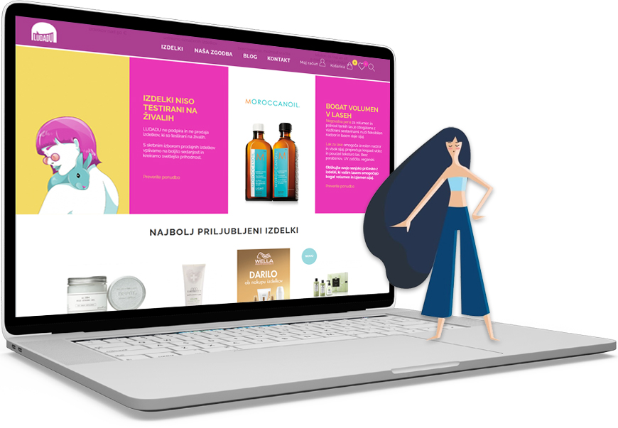 Ludadu spletna trgovina ima v svoji ponudbi vrhunske izdelke za nego in oblikovanje las ter nekaj izdelkov namenjenih negi živali. Mladosten in igriv design spletne trgovine sledi viziji in zgodbi podjetja, z mnogimi naprednimi funkcionalnostmi pa kupcem omogoča varno, hitro in zabavno nakupovanje.